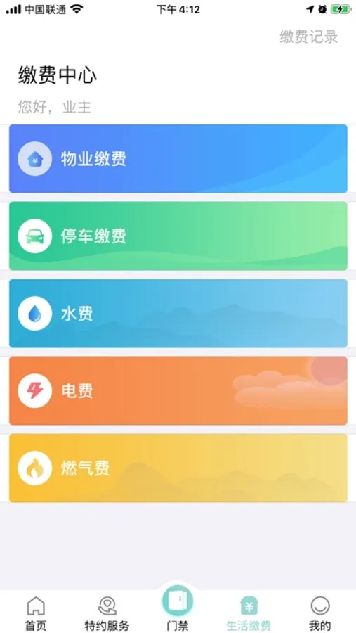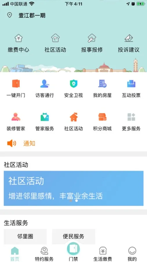 智慧社区APP,APP中包含报事报修、物业缴费、停车缴费,方便业主进行物业费缴纳,停车费缴纳及小区内的报事等。