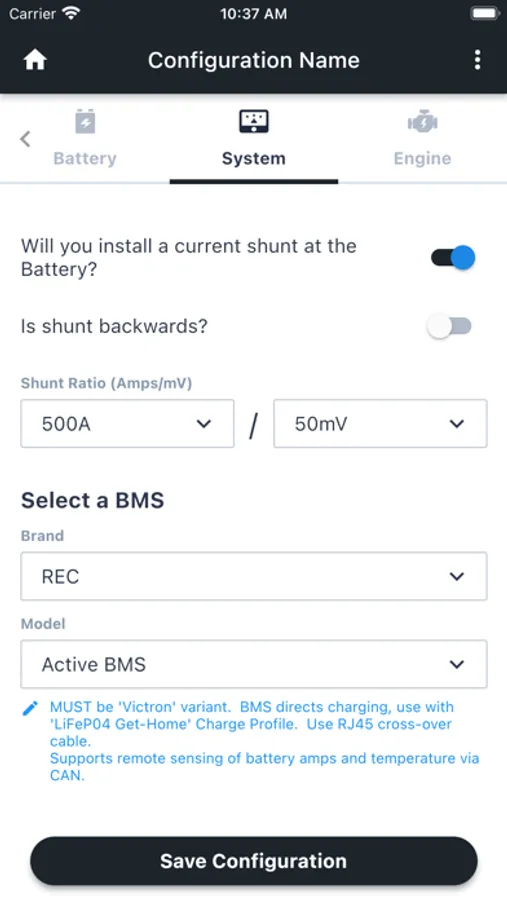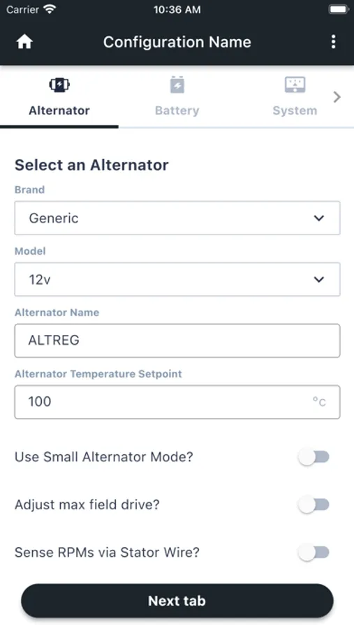 The Wakespeed App allows for simple and reliable configuration of your Wakespeed Offshore WS500 Advanced Regulator. Wakespeed has built in 100's of pre-defined, manufacturer recommended configuration parameters for batteries, alternators, and BMS's; select the brand and models you are using from three easy-to navigate screens to create a customized configuration for your regulator -- just pick-n-go.
