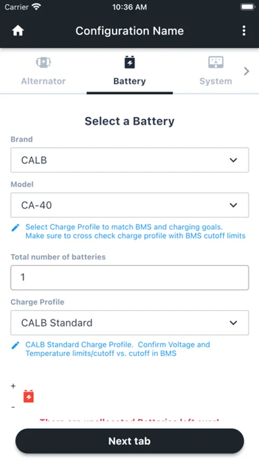 · 100's of pre-defined Alternators, Batteries, and BMS's built in.