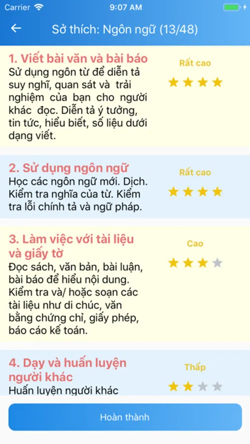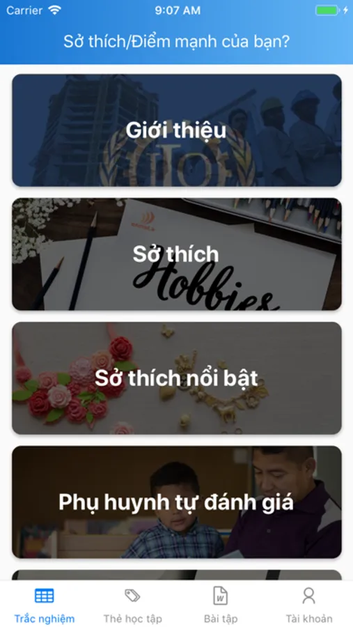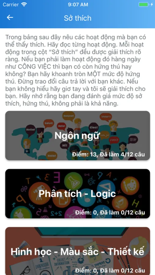 Dựa trên sở thích, năng lực và điểm mạnh được xây dựng từ lý thuyết Đa trí tuệ của Garner được ILO thực hiện trong bộ tài liệu “Hướng nghiệp” dành cho lứa tuổi 14-19 của ILO.