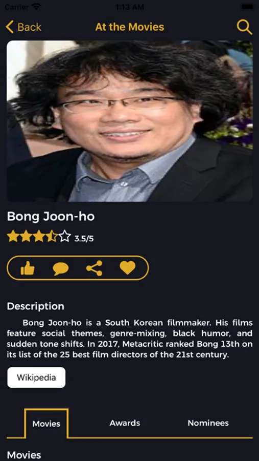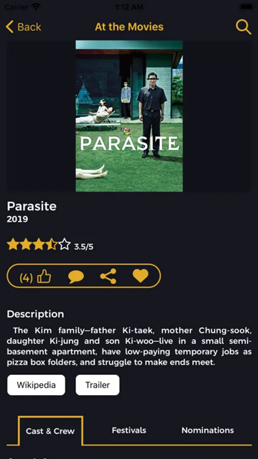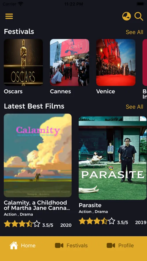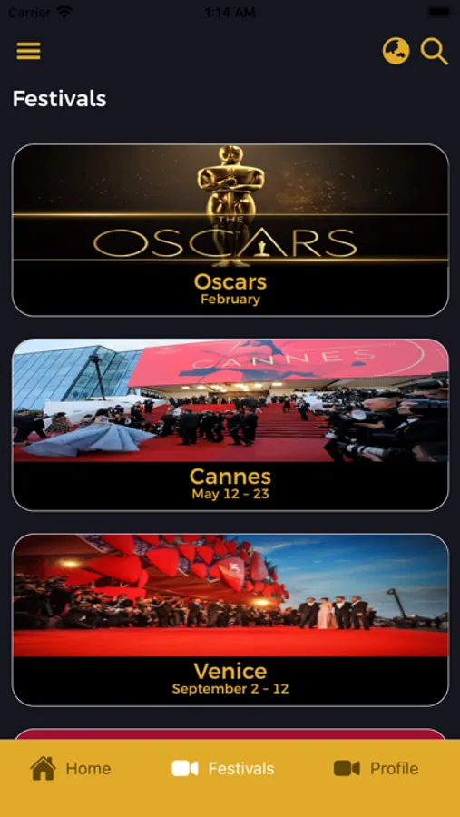 The "At the Movies " App is cinematheque portraying the world's best festivals and the connected movies to the festivals.
