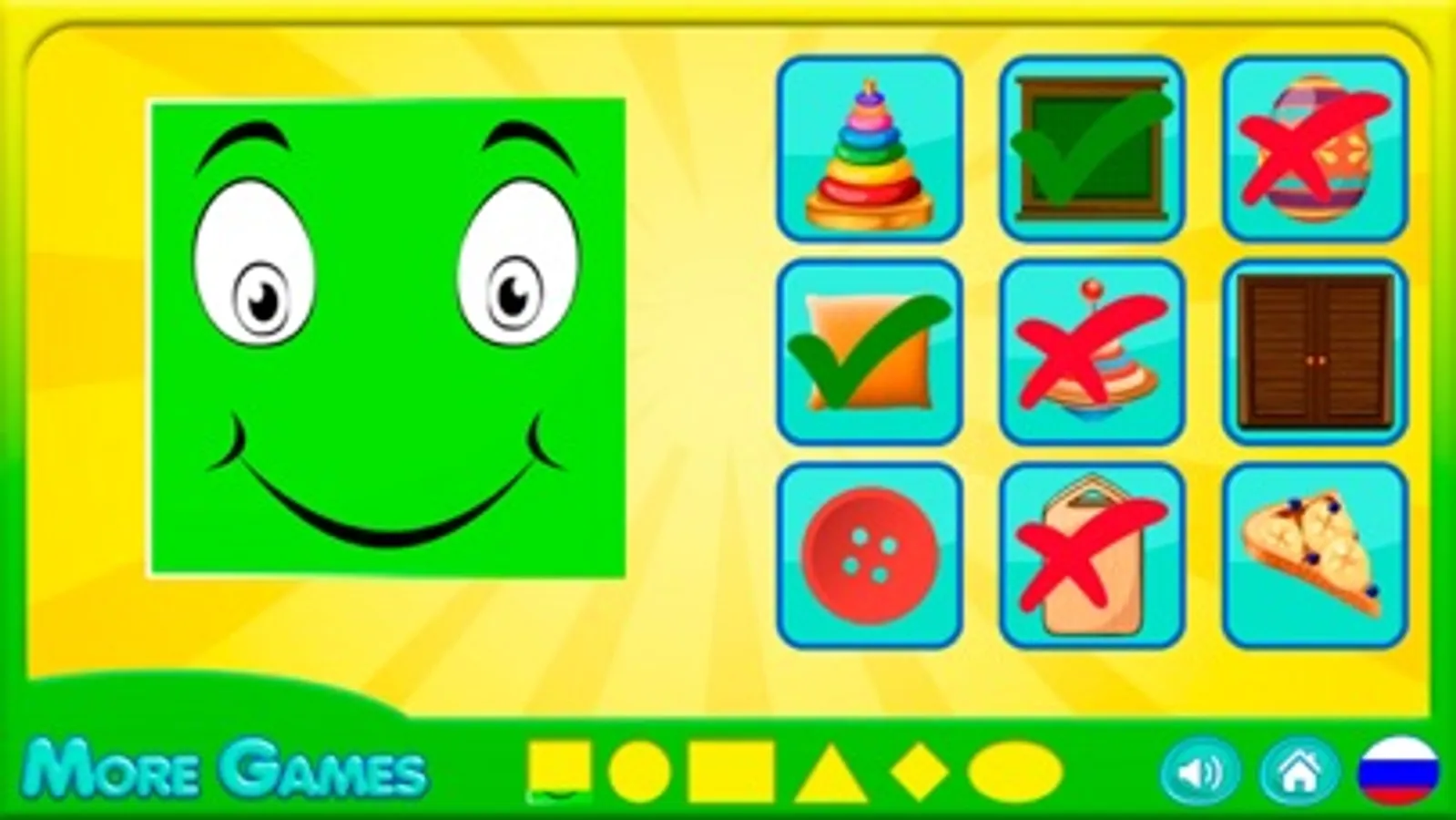 Such game forms the imagination at children, fluent thinking and the ability to quickly acquire information. Also, learning of geometrical figures at early age will allow to study easier at school because the child broadens the outlook, trains a brain and increases a lexicon.