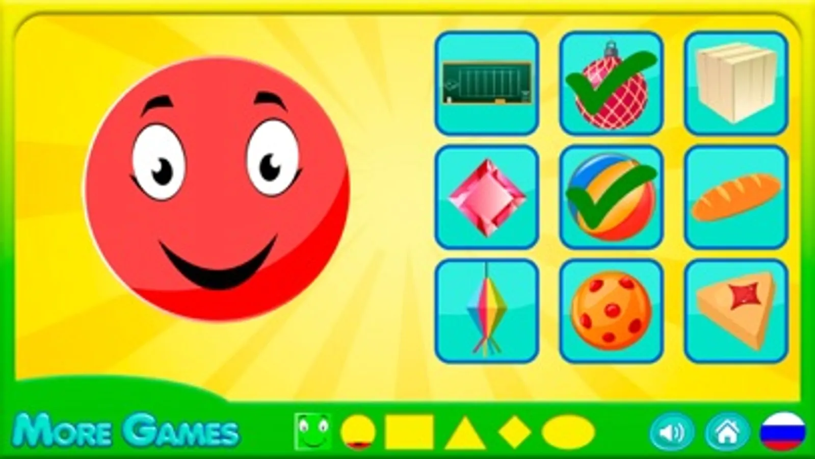 One of properties of surrounding objects is the form. Basically it is geometrical figures. They can be recognized in the majority of the objects surrounding us: a ball is a round, the TV is a rectangular, etc. Learning of geometrical figures is useful for development of the child, expansion of his knowledge of world around. With the children's game "Learn shapes" children will be able to get acquainted with forms.