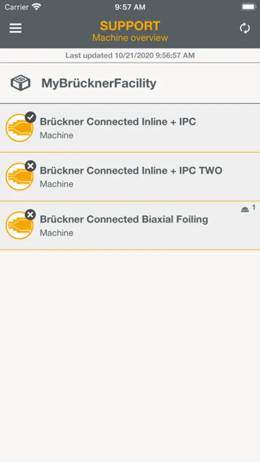 The Brückner ONE SUPPORT App gives you the opportunity to access all your machine – and manufacturing data at anytime, anywhere. Requesting support was never that easy: