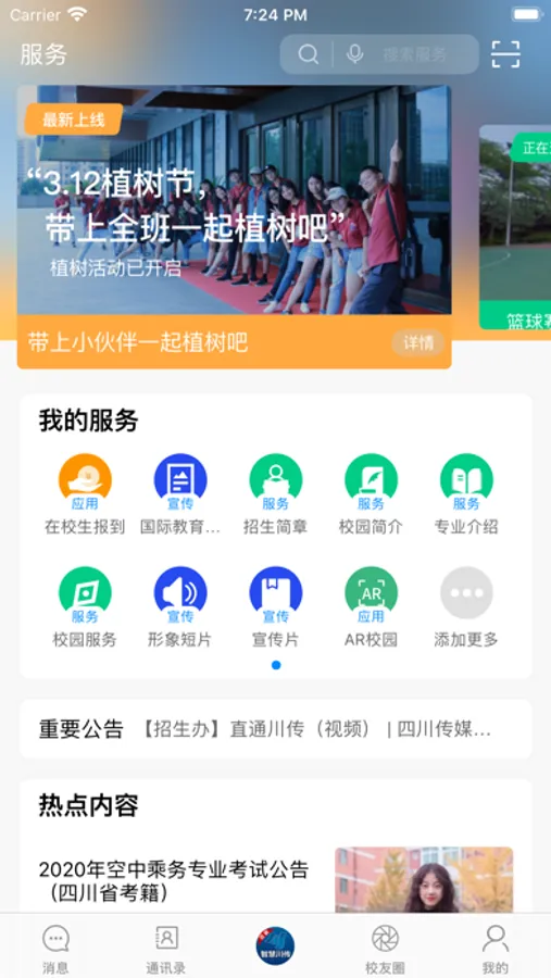 智慧川传是四川传媒学院为全校师生打造的移动智慧校园平台。它通过先进技术和多平台有效融合的模式,对师生所需要的服务进行持续建设和完善,覆盖管理、工作、学习、生活等多个场景,为领导、师生营造一个科学决策、管理透明、工作高效、学术氛围浓厚、生活服务便利的一体化智慧校园。