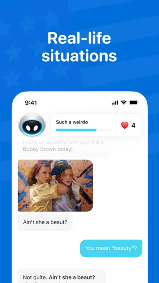 Marq provides a realistic English conversation experience that allows you to practice speaking English anytime and anywhere, without feeling pressured. It feels like talking to a native speaker, and offers a wide range of topics covering both workplace and everyday life. You can practice different life situations: ordering ice cream in a cafe, checking in at the airport, going on a date with a foreigner, and much more.