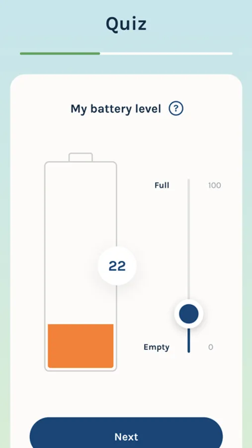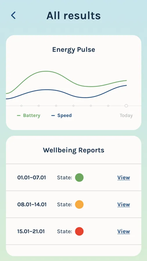 Start to use the BeWell app by filling in the job wellbeing questionnaire. Answer for 5 consecutive days 8 short questions at the end of your working day to evaluate your energy and wellbeing.