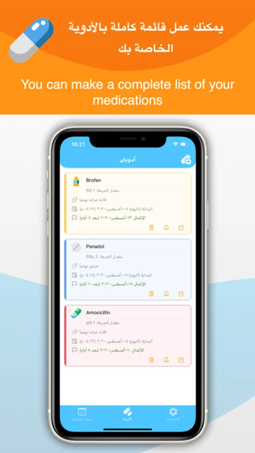 - يمكن اضافة جميع الأدوية الخاصة بك