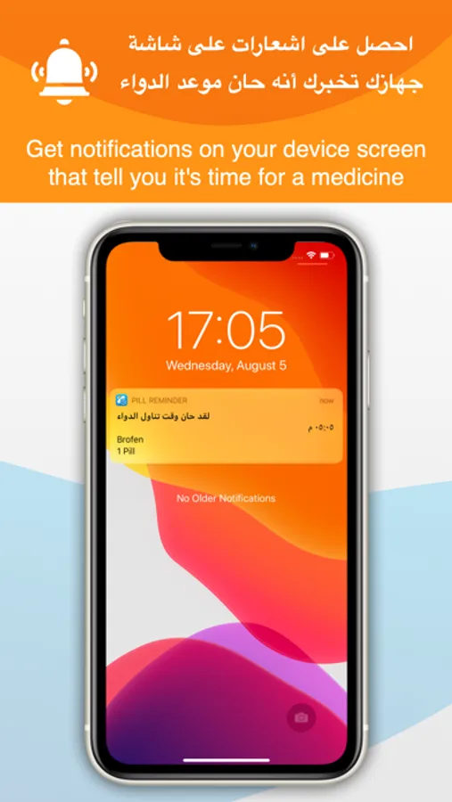 سوف يساعدك التطبيق على تذكر أوقات تناول الأدوية حيث يقوم بارسال الاشعارات لتنبيهك. تستطيع اضافة جميع الأدوية الخاصة بك أو أي شخص من أحد أفراد أسرتك ممن لا يستطيع تذكر أوقات تناول الدواء. ضع علامة صح عند تناول الدواء في الوقت المحدد للتأكيد.