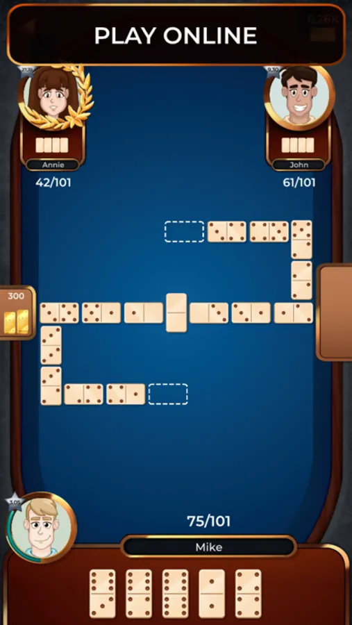 Play with real opponents in Dominoes Online without ads: classic, block, goat.