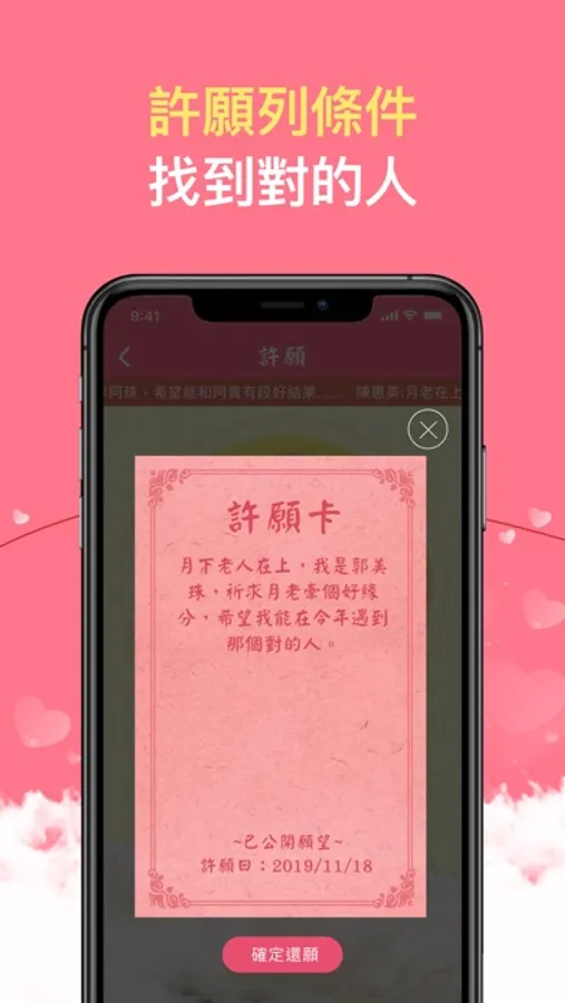 有網友拜了月老之後,2個禮拜內就展開一段新戀情,而且跟原先許下的條件通通符合!別再猶豫,立即下載體驗看看,提升你的桃花運!