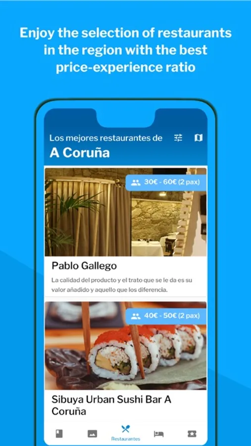 Welcome to A Coruña by GOAZ, the app that will help you discover the best places and experiences of the entire region, to enjoy the best of the gastronomy and the accommodations which are offered and much more.