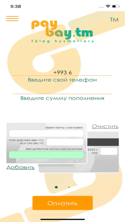 Pay Bay - онлайн пополнение мобильного телефона с помощью карт платежной системы "Altyn Asyr"