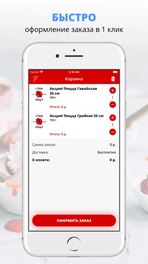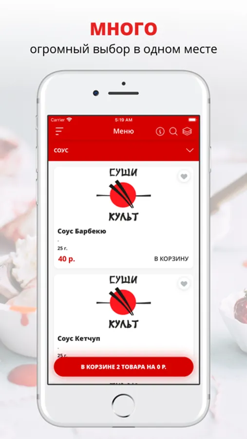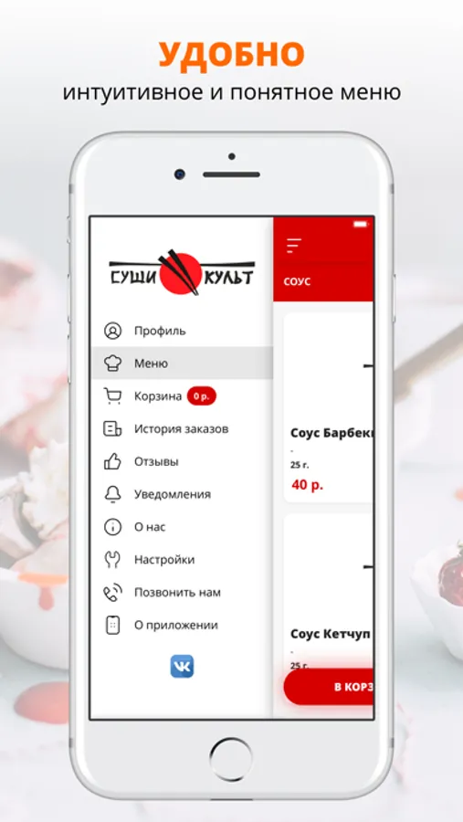 Ресторан японской кухни Суши Культ. Приложение для заказа еды.