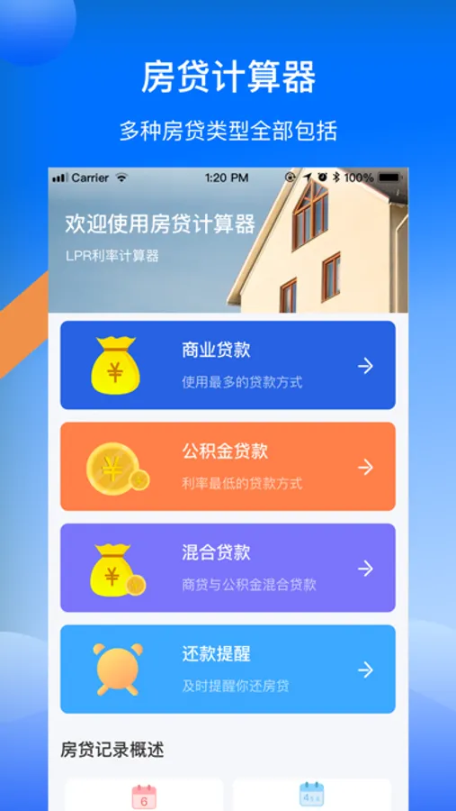 我们的应用程序包含商业贷款计算、公积金贷款计算、组合贷款计算等多个方式计算房贷;