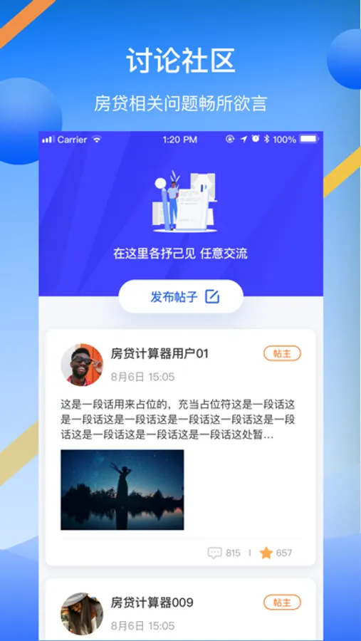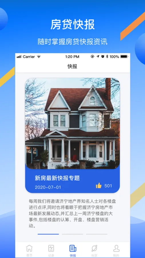 在我们的产品上你不仅可以计算房贷还款情况;还可以随时记录自己的还款记录;查看房产行业动态,能更好的为用户进行购房决策;支持社区讨论,互相交流。