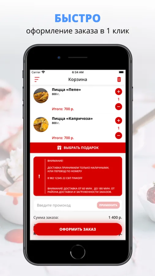 Скачивайте наше приложение, оформляйте заказ и наслаждайтесь любимой едой, где бы Вы ни были! Приятного аппетита!
