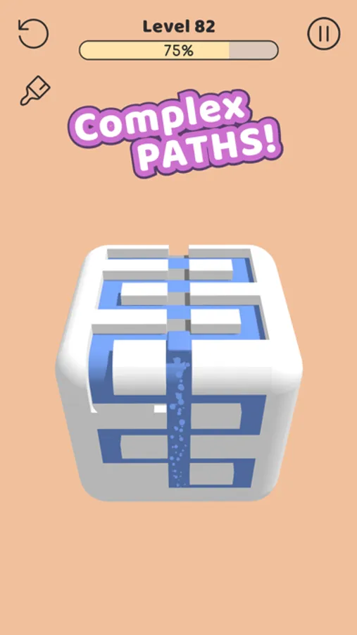 Swipe up, down, left and right to spread colorful paths around the cube. It’s super satisfying to watch the cube twist and turn as you paint it with color. But watch out - it gets trickier as more paths appear! So make sure you don’t leave any path unpainted, or else you will need to retrace your steps to solve the puzzle!