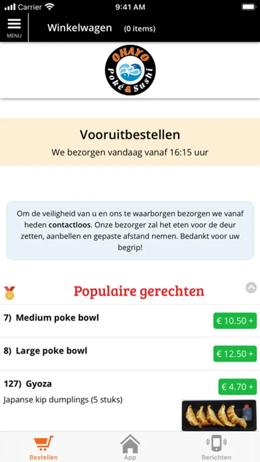 Download onze app en blijf op de hoogte van het laatste nieuws en de nieuwste acties, aanbiedingen en kortingen. Via onze app kunt u onze menukaart bekijken en direct vanaf uw telefoon uw bestelling plaatsen. U kunt via de app ook met iDEAL betalen!
