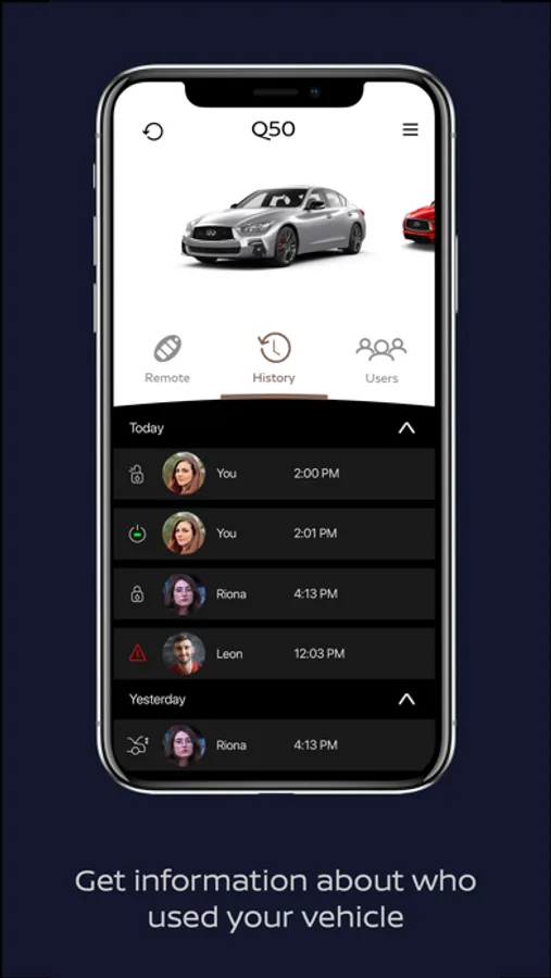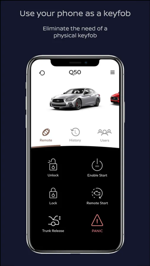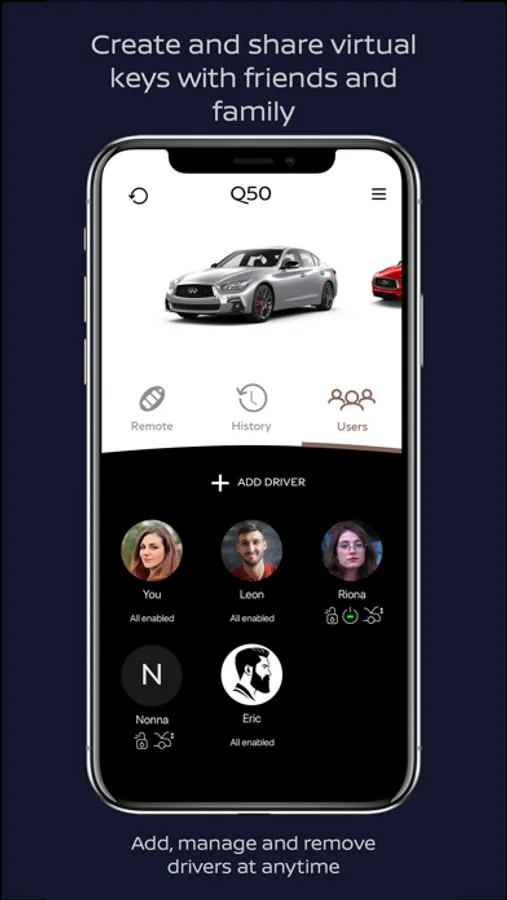 Please note: The Infiniti Virtual Key requires the installation of an Infiniti Virtual Key device on the vehicle.