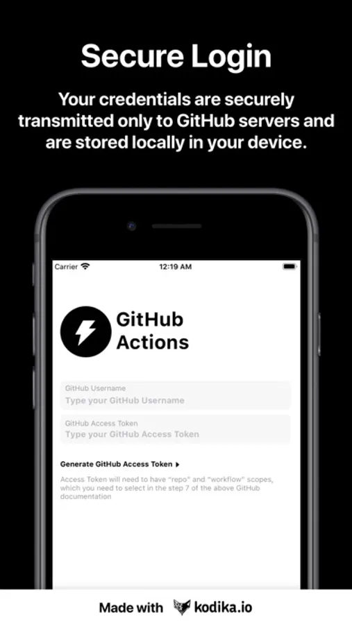 Connect directly to GitHub API. Your credentials are stored only on your device.