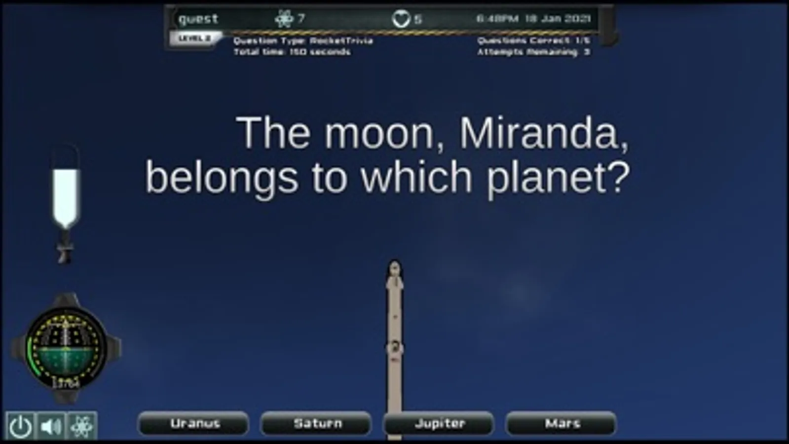 Assess proficiency in answering space trivia according to educational standards. Rewarding levels of gameplay maintain engagement. You will forget you were learning as you launch rockets into space! You may optionally buy reports analyzing trivia answers. Teachers and parents may find this optional feature particularly useful.