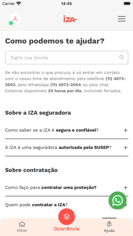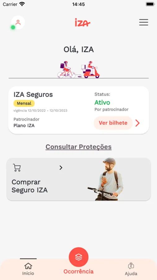 Através do aplicativo IZA, o segurado tem na palma da mão todas as informações que precisa e pode consultar o status do seguro, contratar novas coberturas, verificar pagamentos, falar com nosso time de especialistas caso aconteça um acidente, enviar documentação, entre outros serviços.
