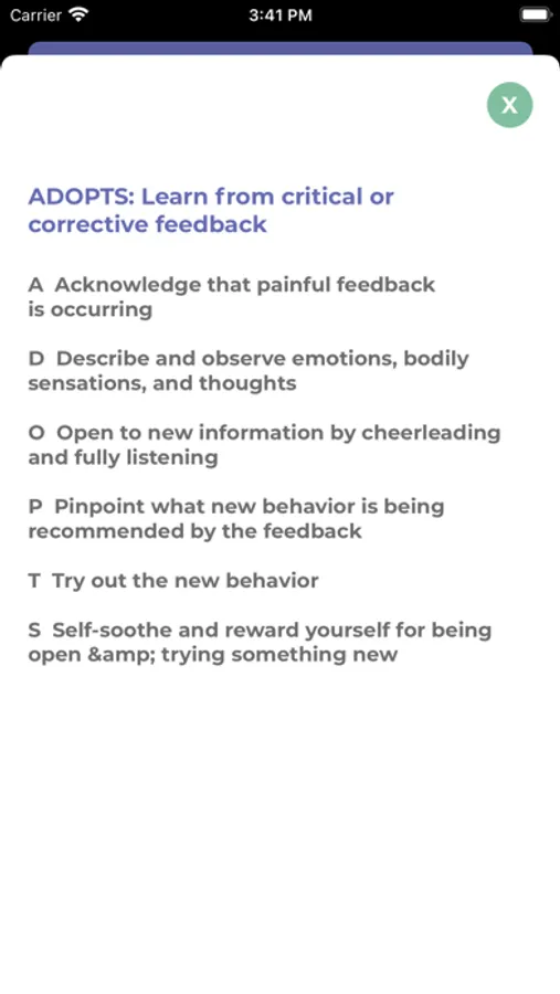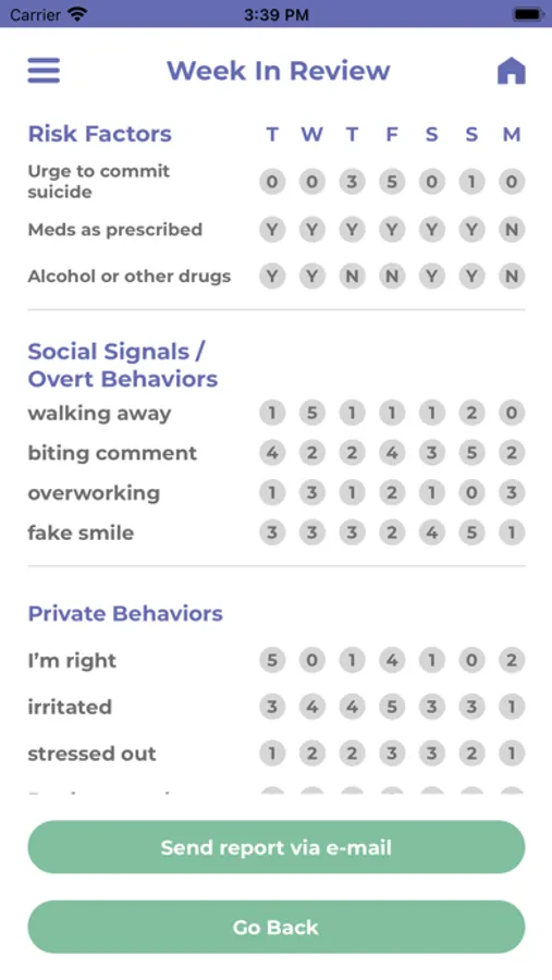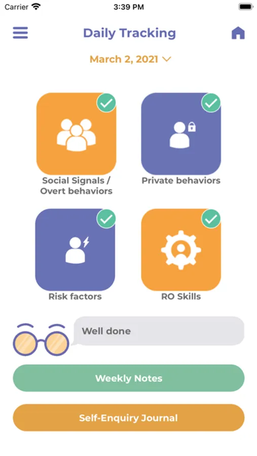The RO DBT app features a diary card, skills help, safety toolkit, and self enquiry journal. Set up automatic tracking reminders and a push feature to send a pdf diary card to your therapist. Easily track social signals, private behaviors and use RO DBT skills.