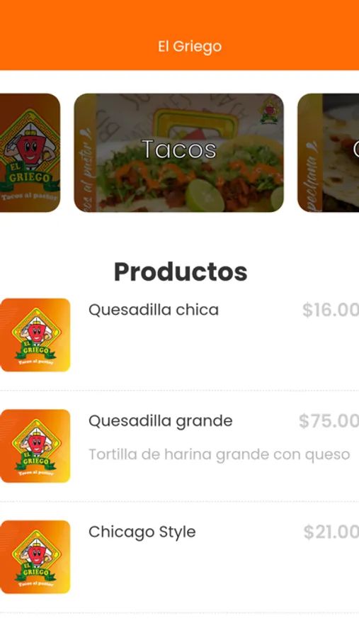 Menu para realizar ordenes a domicilio, recoger o en local.