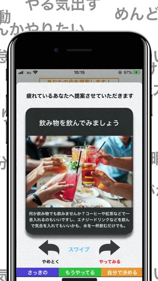 行動カードをスワイプで次やる行動を決めてみましょう。