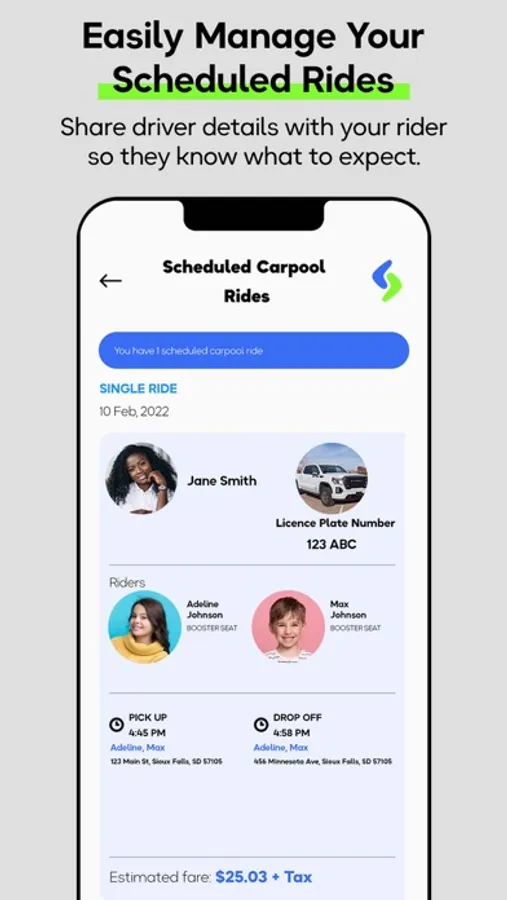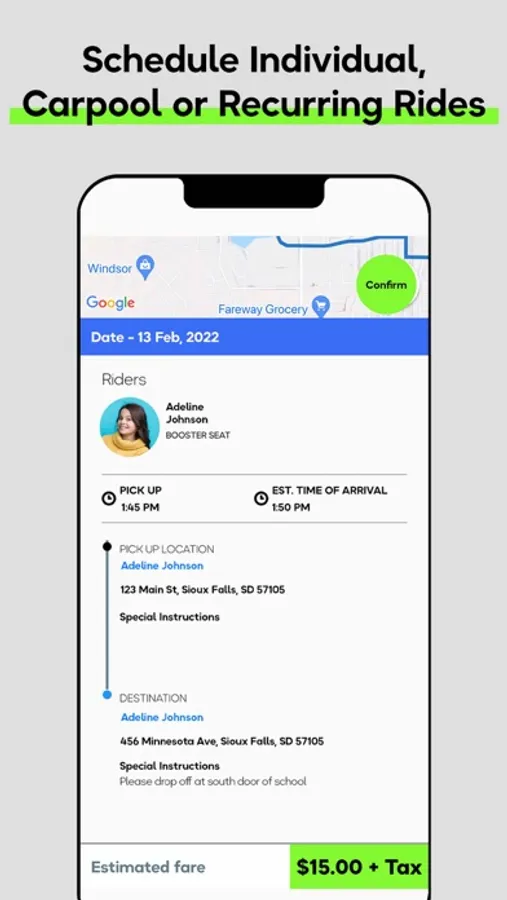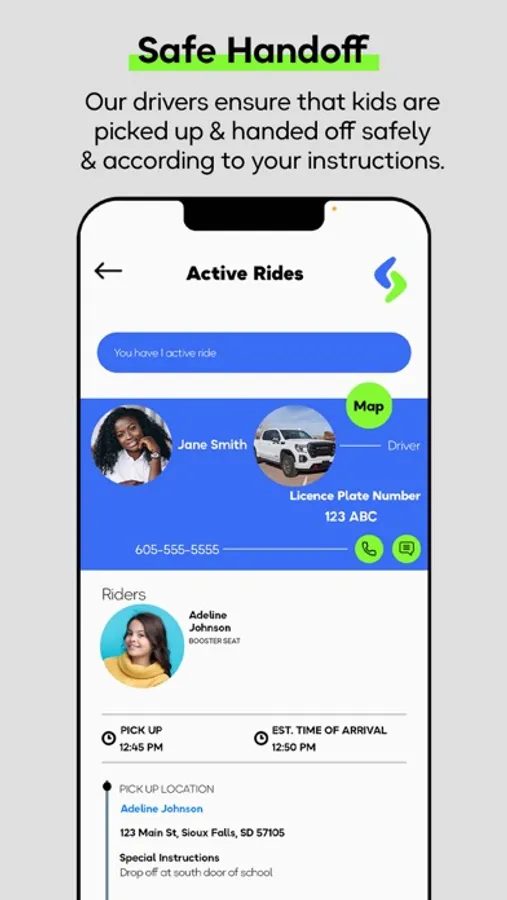 · When scheduling a ride, you can provide the driver with specific pick up and/or drop off instructions such as walking them to soccer practice and ensuring handoff with the coach or signing into school.