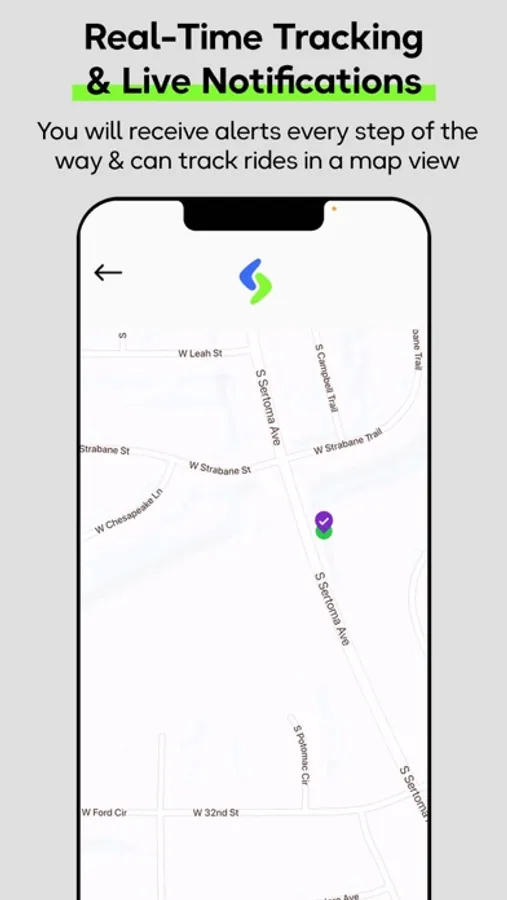 3) NOTIFICATIONS & TRACKING - receive real-time notifications when your child is picked up and dropped off, with the ability to monitor the ride in a map view from start to finish for added peace of mind.