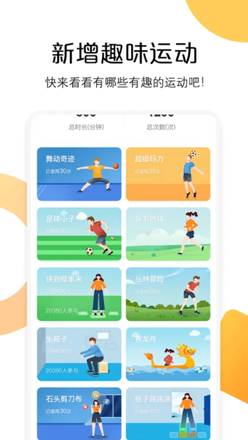 丰富有趣的趣味运动可让你在娱乐中达到“热身”及“拉伸”的效果,可以更好的提升你在训练中的运动水平