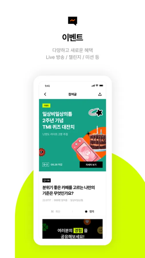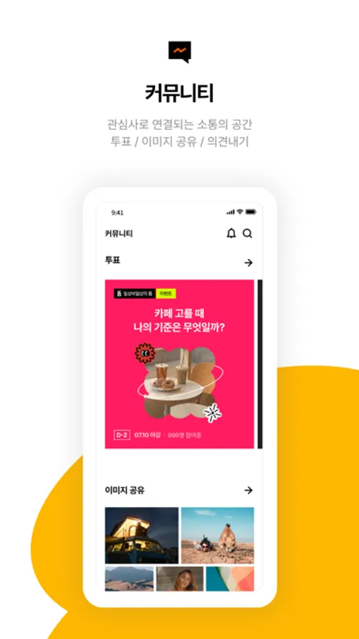 - 알림: 맞춤형 혜택, 추천 콘텐츠 및 커뮤니티 활동 소식 수신을 위한 앱알림 허용