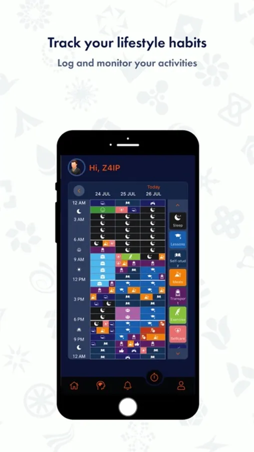 Z4ip is designed to keep track of your cognitive performance as you go about your day, helping you identify when you are at your peak performance, and when you need that little extra boost.