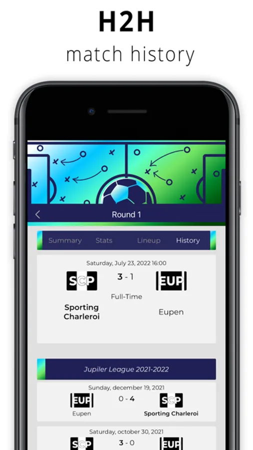- Follow the matches in LIVE mode. All the events of the match: result, goals, cards, etc.