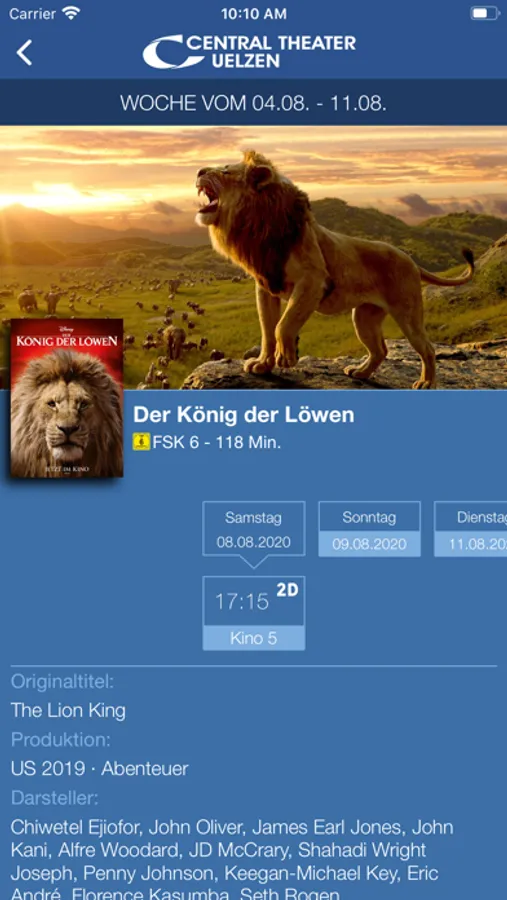 Unsere neue, native Kino-App bringt Sie mit einfachen, intuitiven Gesten in einer ansprechenden und modernen Aufmachung in wenigen Schritten zu Ihren Lieblingsplätzen. Genießen Sie die neuesten Trailer des aktuellen Filmprogramms und seien Sie immer auf dem neuesten Stand. Registrieren Sie Ihr persönliches Benutzerkonto und verwalten Sie Ihre Buchungen bequem und direkt in der App.