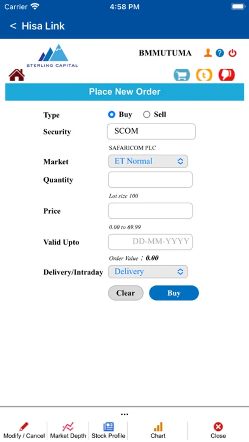 • Real time market prices and order placement