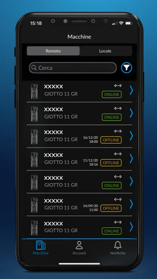 Service created by Gel Matic Italia specifically for Giotto line. Through a WiFi and/or BLE connection, it provides easy access to the machine from a remote location.