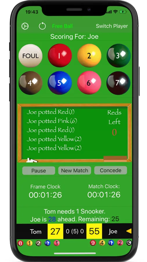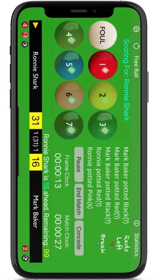 Score your Snooker Match electronically, on our Electronic Snooker Scoreboard. Snooker Score will automatically keep track of your: