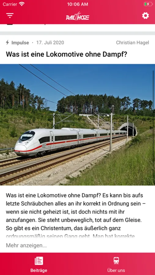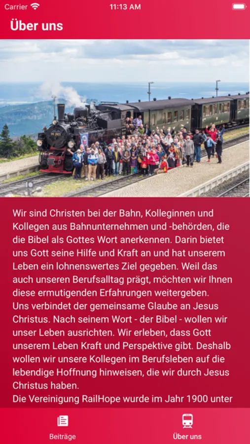 Wir sind Christen bei der Bahn, Kolleginnen und Kollegen aus Bahnunternehmen und -behörden, die die Bibel als Gottes Wort anerkennen. Darin bietet uns Gott seine Hilfe und Kraft an und hat unserem Leben ein lohnenswertes Ziel gegeben.