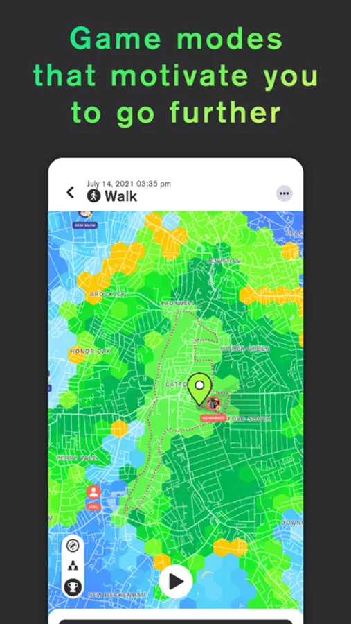 Join thousands of neighboring players and compete to own your town or city. Whether walking to work, training for a marathon or hiking at the weekend - track your activity using GPS and claim the places you visit.