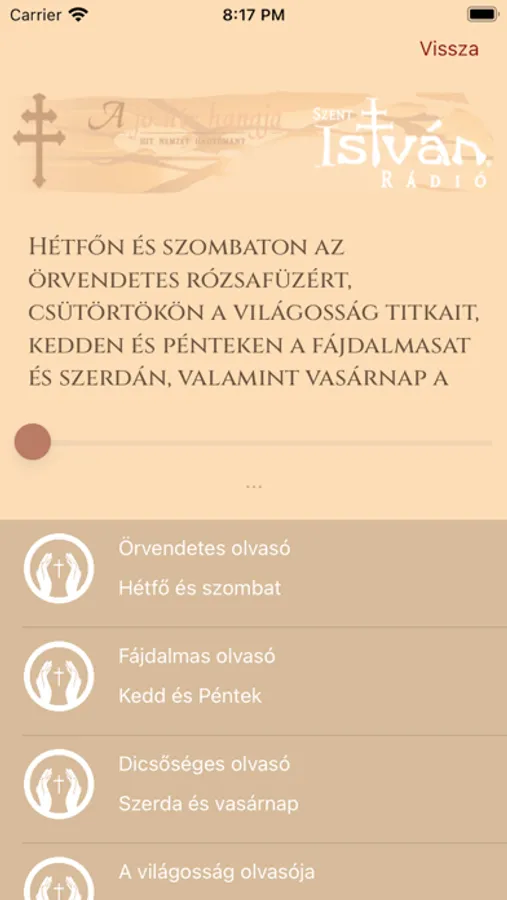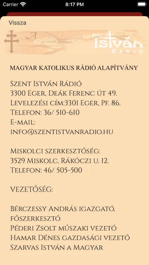 2000-ben indult el a ma Szent István Rádió néven ismert adó, Magyarország első katolikus rádiójaként lett a "Jó hír hangja". Egyház, vallás, kultúra, szórakozás, közélet, tudomány, sport, hírek - mindez nyugodt hangvételben. Minden nap közvetítünk szentmisét, Úrangyala és rózsafüzér imádságot.