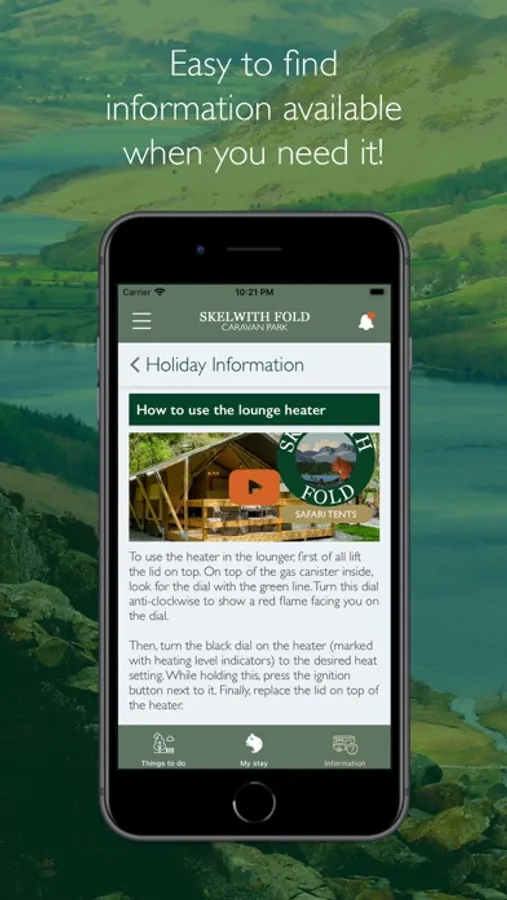To help with your visit to Skelwith Fold, this app also includes a full FAQs section with video guides to answer any questions you may have before and during your stay.