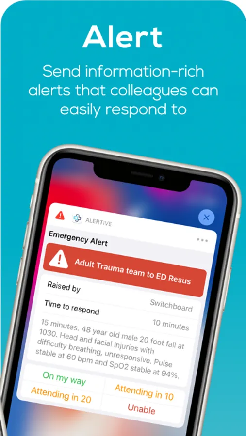 Alertive is a mobile application that covers all your communication needs, saving front-line clinicians time and enabling them to deliver better and faster patient outcomes. Its core capabilities include critical alerting, secure messaging and the automatic retrieval of updates from clinical systems (through integrations).