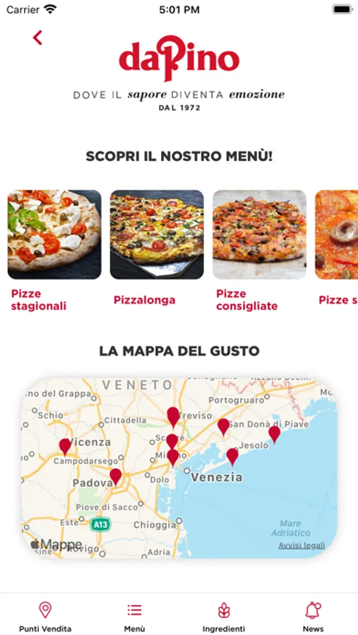 Scopri i menù, trova il locale più vicino a te e naviga tra le news. Un’app pratica, intuitiva e completa. Il modo più semplice e innovativo per rimanere sempre in contatto con il mondo da Pino e Pizzalonga away, direttamente dal tuo cellulare.