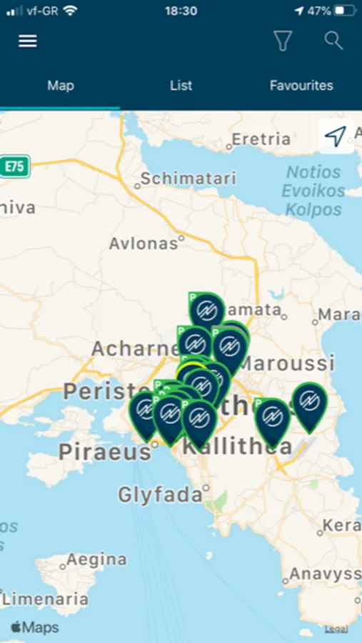 - Charging point locations displayed as a list of nearby locations or on a map, (with simple pricing information shown to the user if applicable)