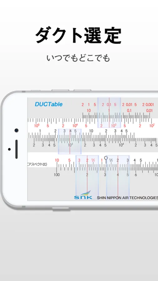 このアプリケーションは、建築設備のダクトを選定するための計算尺です。