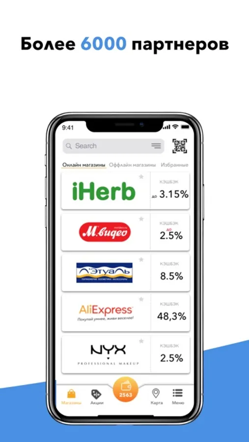 Совершай заказы в Aliexpress, Мвидео, Эльдорадо, Kupivip, iHerb, Л'Этуаль, Shein и еще более 2000 магазинов, ресторанов, сфер услуг через мобильное приложение Brevix и получай часть денег с каждой покупки обратно.