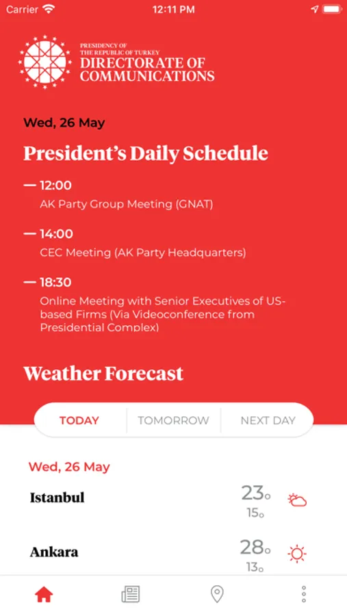 This application has been prepared by the Directorate of Communications to help the foreign media members who reside in our country. Via the application, users will be able to follow up on the President's schedule and get real-time news of Türkiye.